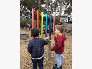 At the music garden the children took turns exploring each of the musical instruments, discovering how to create different sounds and rhythms. Many of the instruments looked quite different from the traditional ones we’re used to seeing, which made our visit even more interesting! There was lots of investigation, problem-solving, and curiosity as we worked out how to make each instrument produce sound.